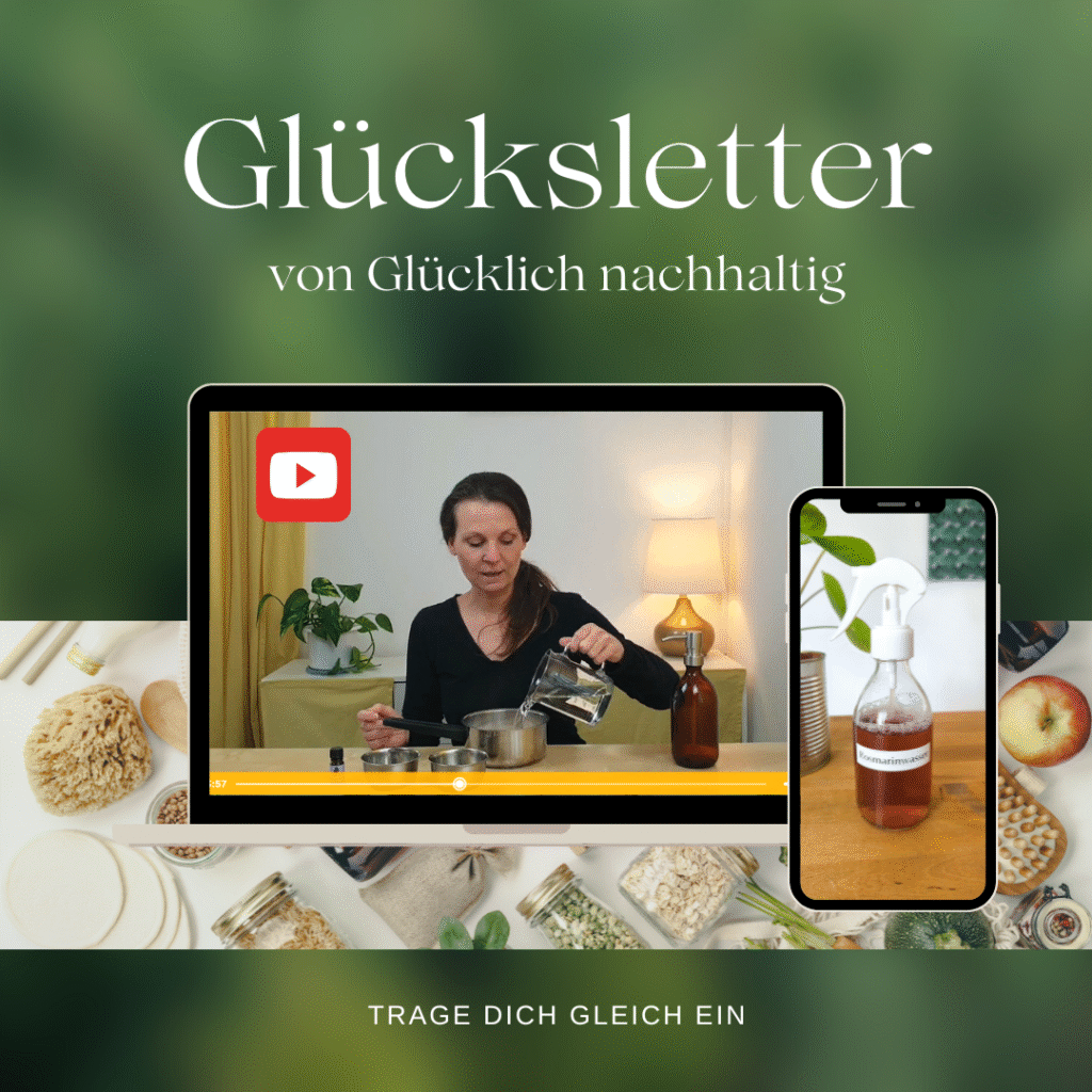 Nachhaltig leben darf leicht sein und Spaß machen. Mit meinem Glücksletter bekommst du regelmäßig frische Ideen und Inspirationen für einen achtsamen Alltag direkt in dein Postfach. Freu dich auf einfache DIY-Rezepte, nachhaltige Lieblingsprodukte, exklusive Tipps und Updates zu meinen Büchern und Projekten.